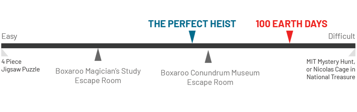 Boxaroo is taking over 1950 Mass Ave in Cambridge for an evening! We’ll be hosting The Perfect Heist along with 100 Earth Days. As with all of our Live Puzzle Events, dozens of teams will come together to experience a puzzle adventure simultaneously. Compete to complete the story first, uncover the secret solution -- or just aim to finish in time!